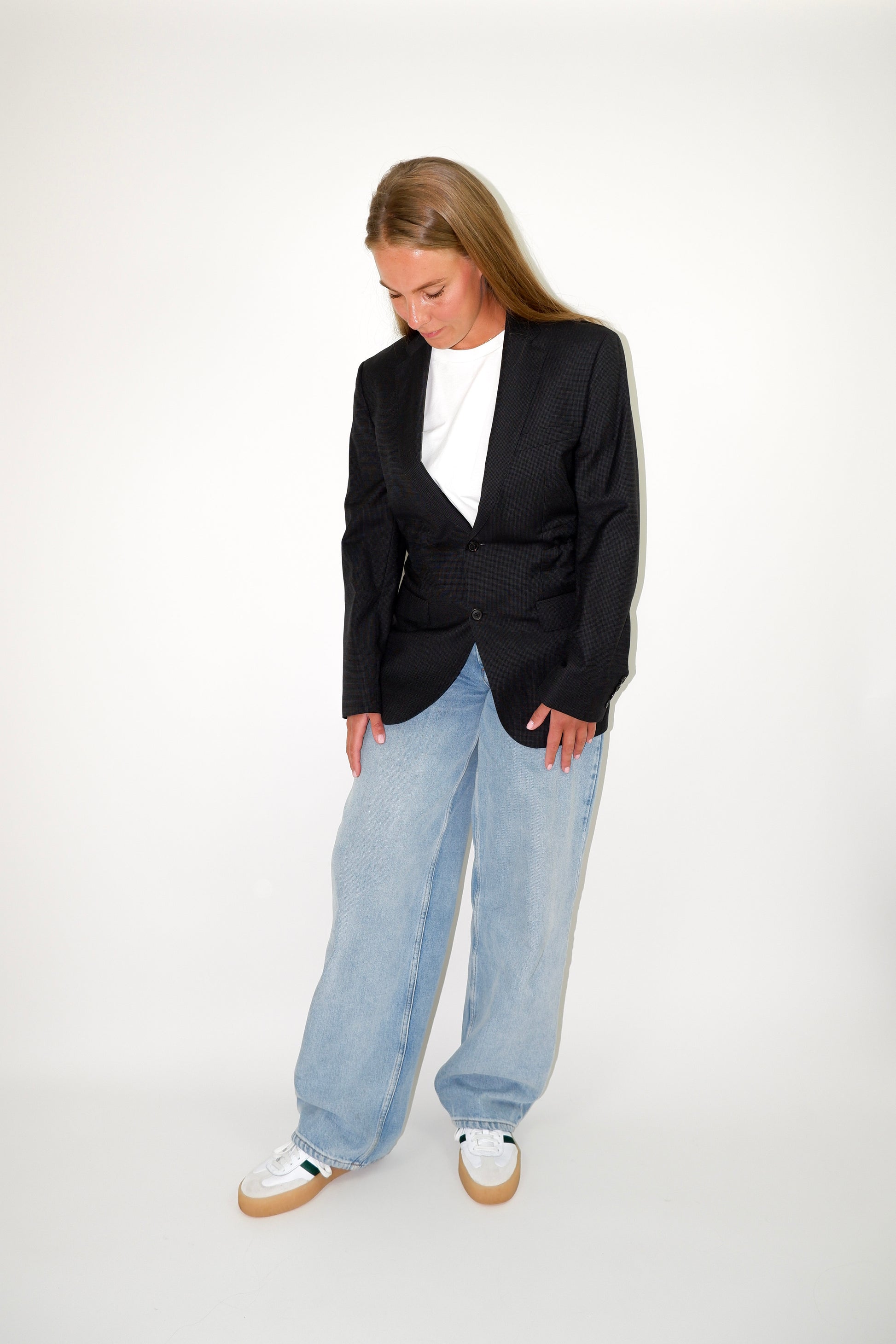 Dankzij de verstelbare tailleband kun je de maat van de blazer naar wens aanpassen, zodat hij altijd comfortabel en passend zit.